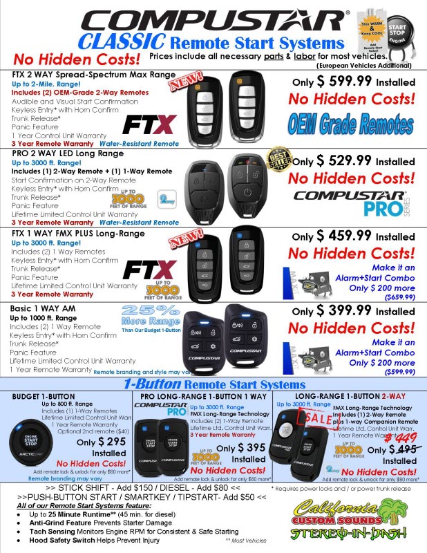 Click the flyer to learn more about our Classic and 1-Button remote start systems. Then visit us in person or Order Online